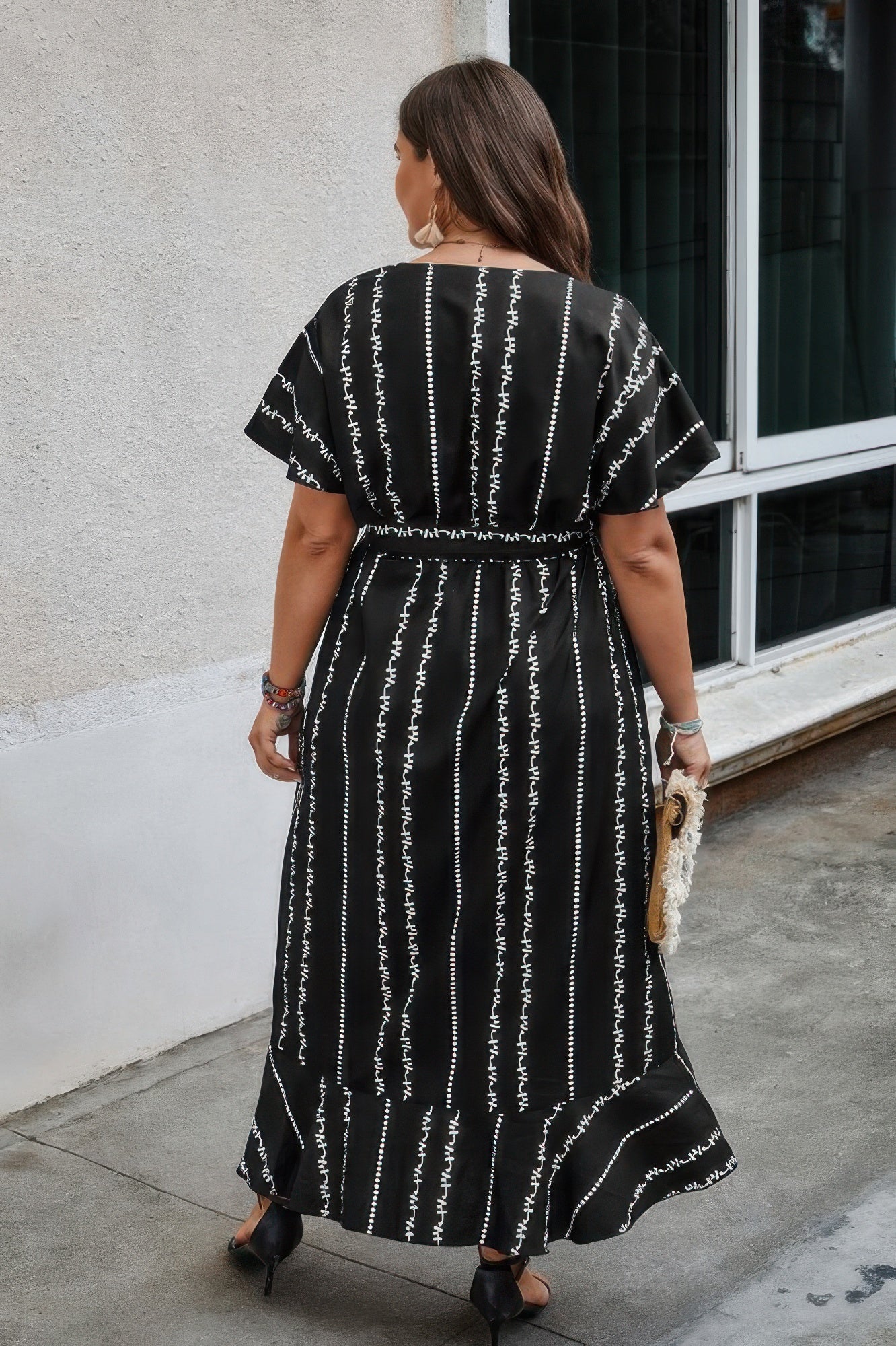 Plus Deep V Belt Asymmetric Hem Fit Dress